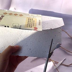 Potong-potong kecil kertas di bagian yang terdapat benih bayam yang terlihat sedikit menonjol dan berwarna hitam